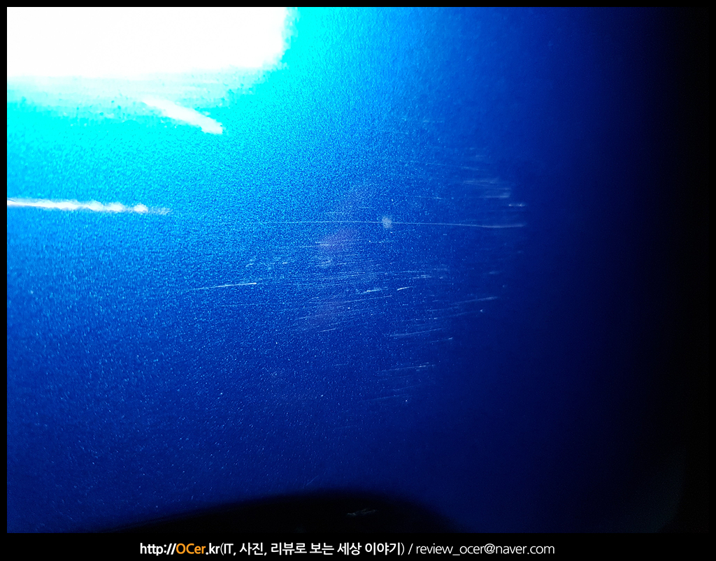 그리고 이게 찍는 방향에 따라서 또 잘 보이고 안보이고 그렇습니다. 어쨌거나 어느 방향에서 봐도 스크레치가 보인다면 그건 문제가 있는 거죠.