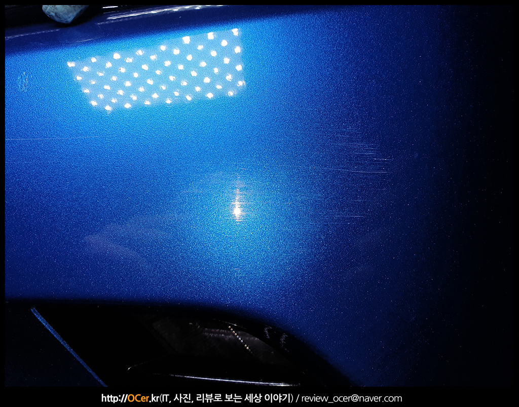 이렇게 LED 를 가져다 비춰보면.. 제대로 드러나게 됩니다. 어두운 곳에서는 잘 안보여요. 그래서 광택작업시에도 조명이 중요한거구요.