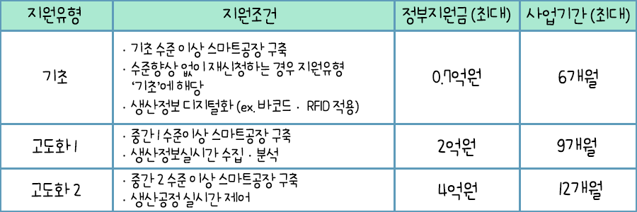 지금까지 2021년 새롭게 개편된 스마트공장지원사업에 대한 내용을 살펴보았습니다.