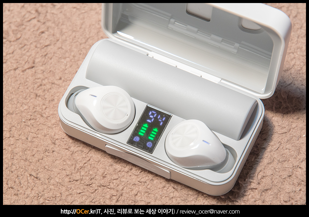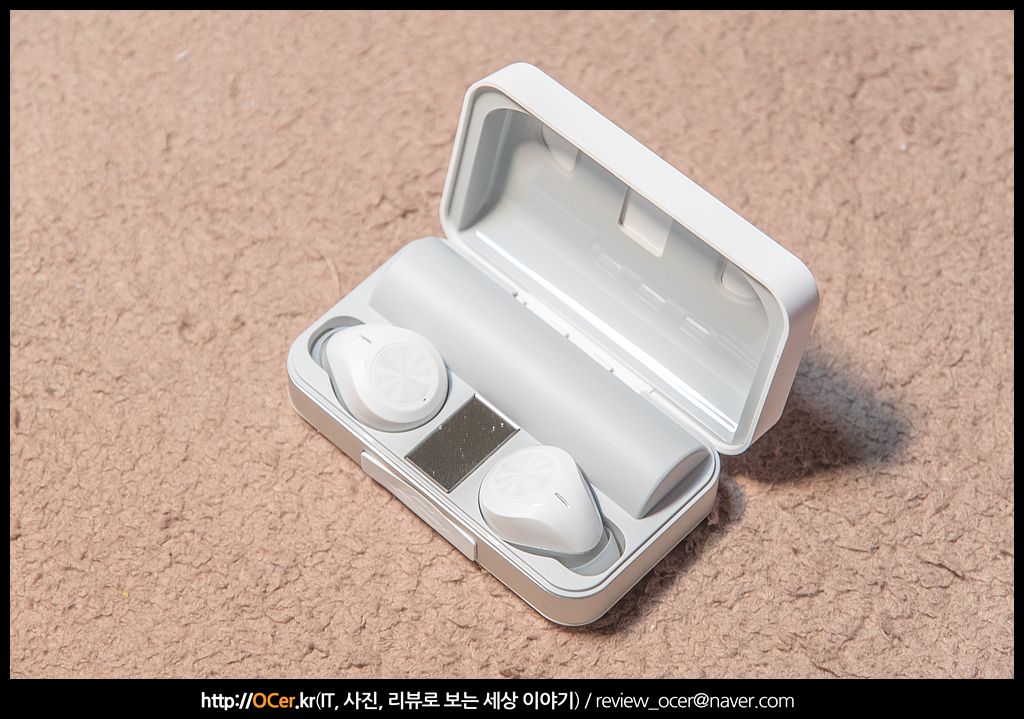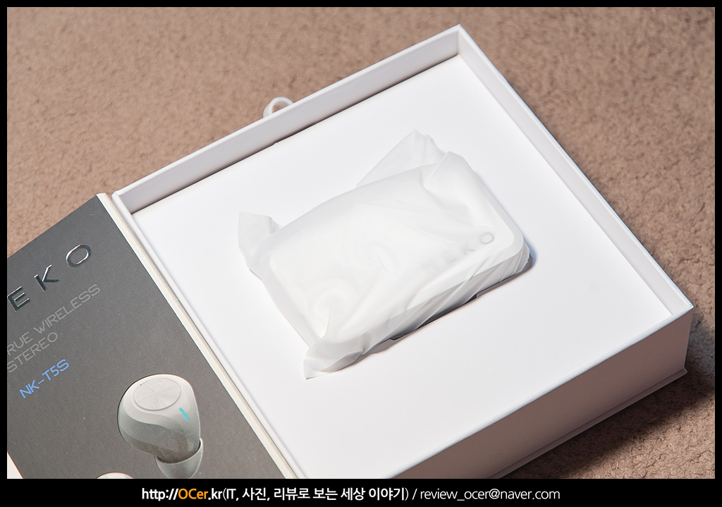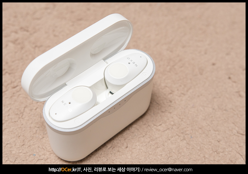 이어폰 색상은 그레이, 화이트 투톤이며, 배터리 케이스도 동일합니다. 저기 툭 튀어 나와 있는 부분이 아무래도 배터리 부분 같습니다. 기존 NK-ANCS1 보다 배터리 용량이 크다 보니 이런 부분은 수긍이 갑니다.