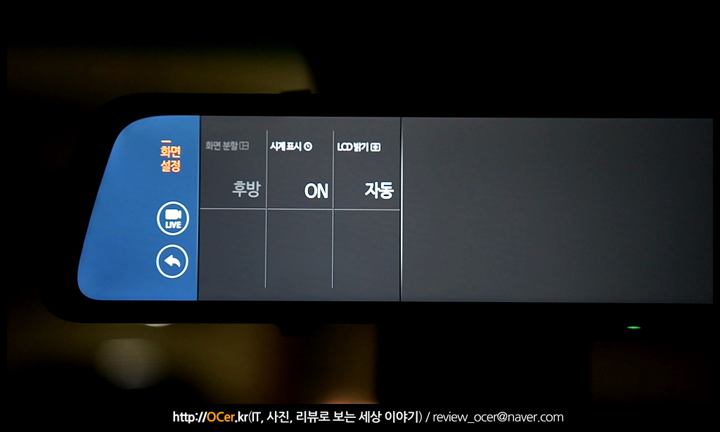 화면 설정에서는 화면 분할, 시계표시, lcd 밝기에 대한 설정이 가능한데, 화면분할은 왜 들어갔는지 모르겠습니다. 뭘 눌러봐도 비활성화가 되어 있음.