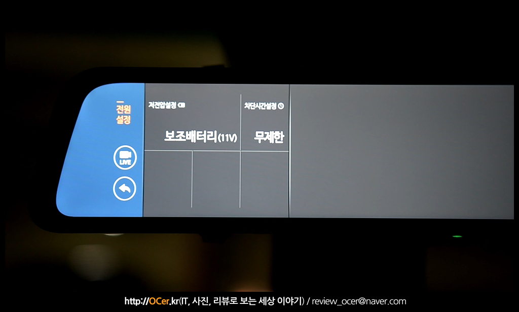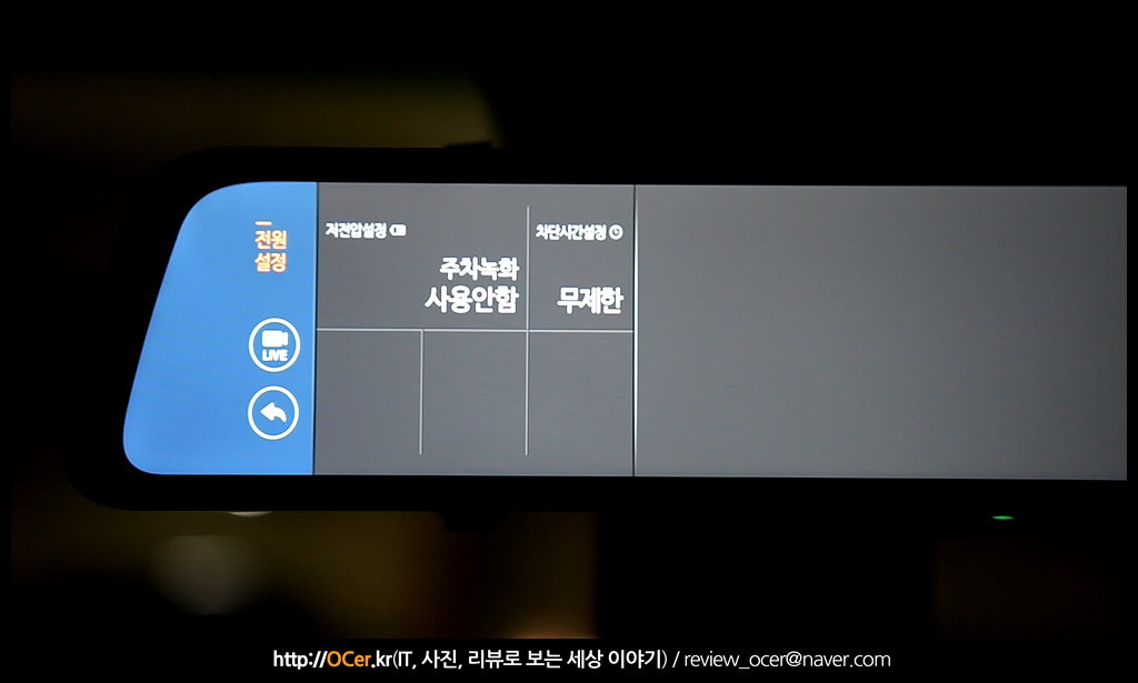 설정 메뉴는 거의 비슷한데, 전원 설정이라고 따로 들어가 있네요. 아마 저전압 차단 관련된 설정이 있을텐데, 원래는 녹화설정에 있었습니다.
