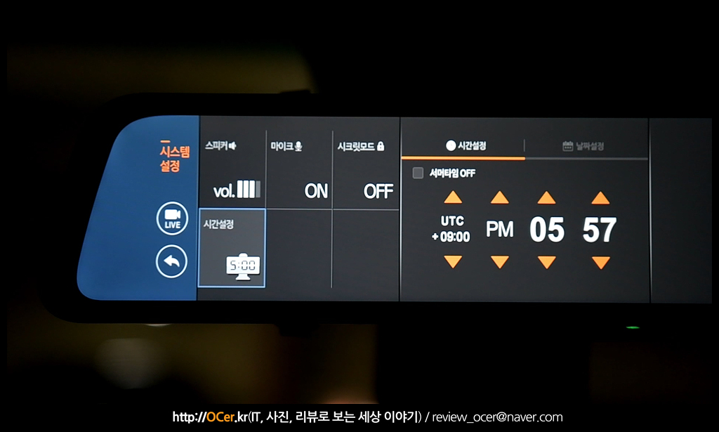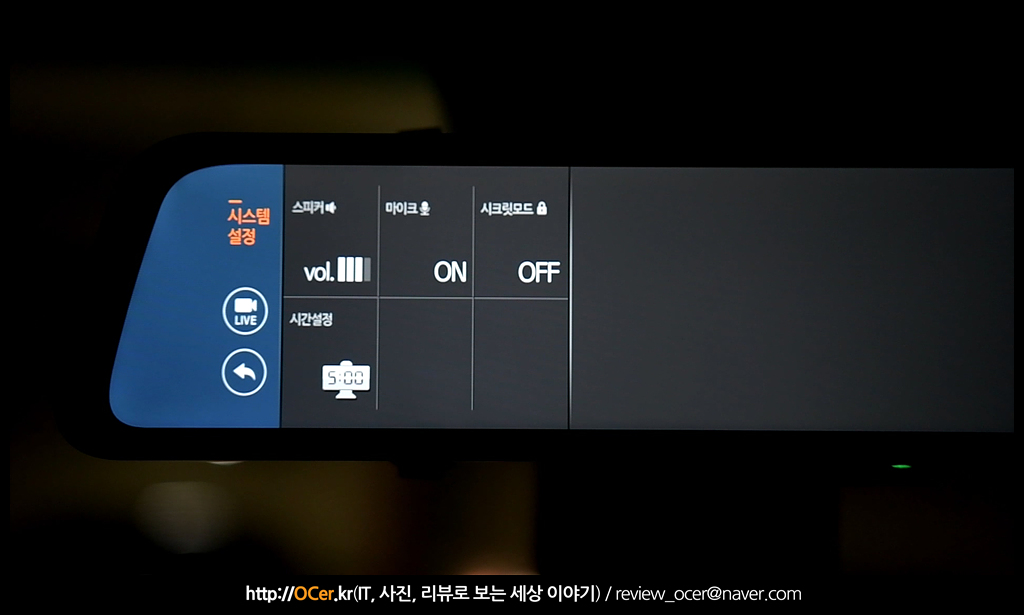 시스템 설정에서는 볼륨 조절, 마이크 on/off 시크릿모드, 그리고 시간 설정이 가능합니다.
