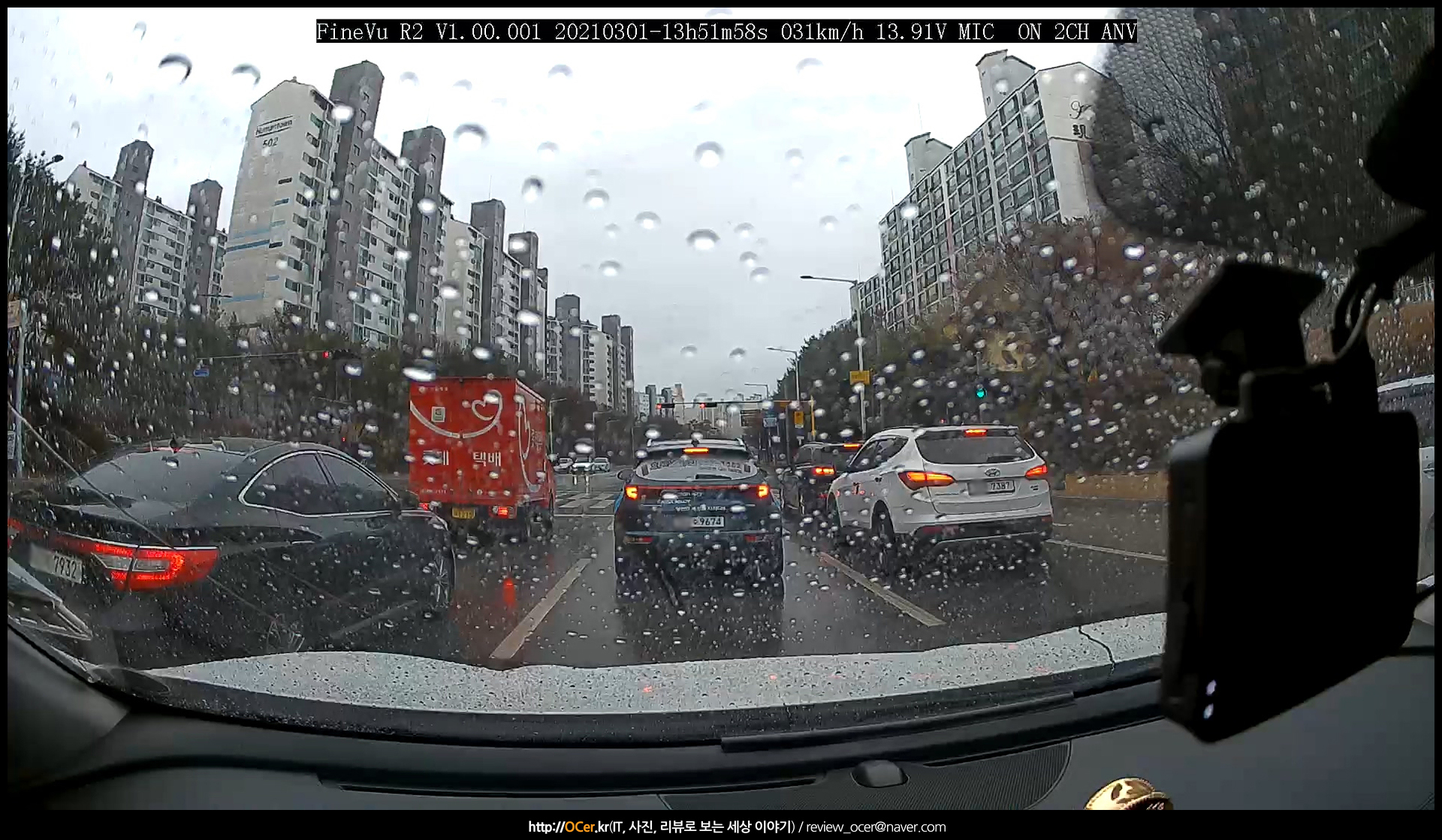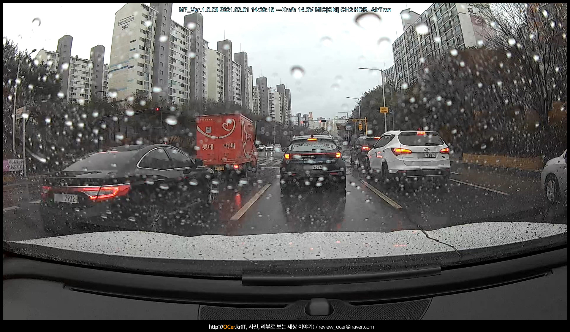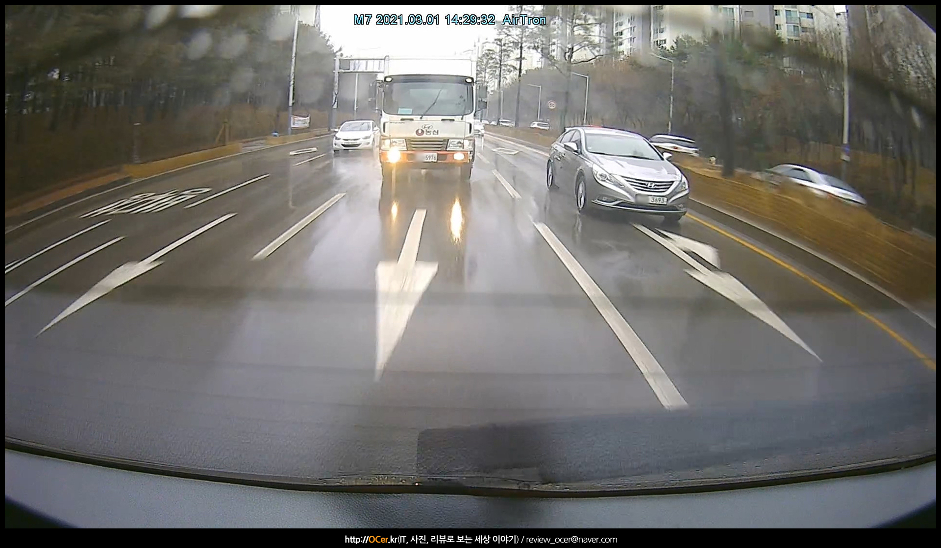 여기까지 눈비 많이 오던 날 파인뷰 R2 와 에어트론 M7 영상 비교를 마칩니다. 이제 야간 영상 비교 남았네요.