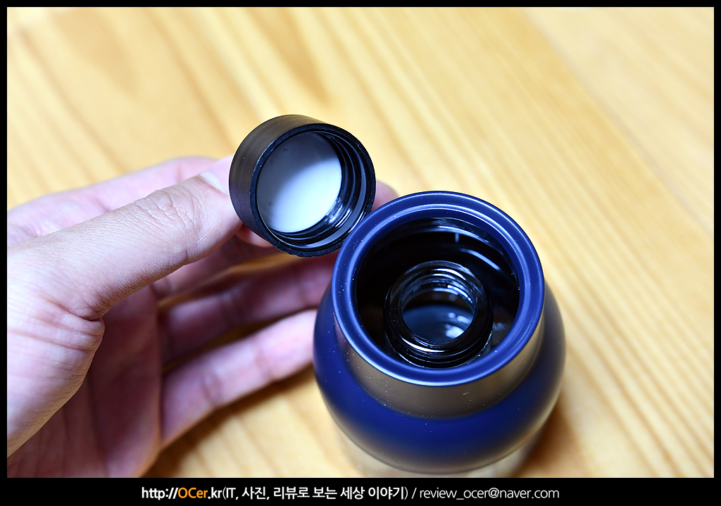그라스 블루라 그런지, 용기 윗 부분이 블루 계열의 색상을 띄고 있습니다. 굉장히 세련되었어요.