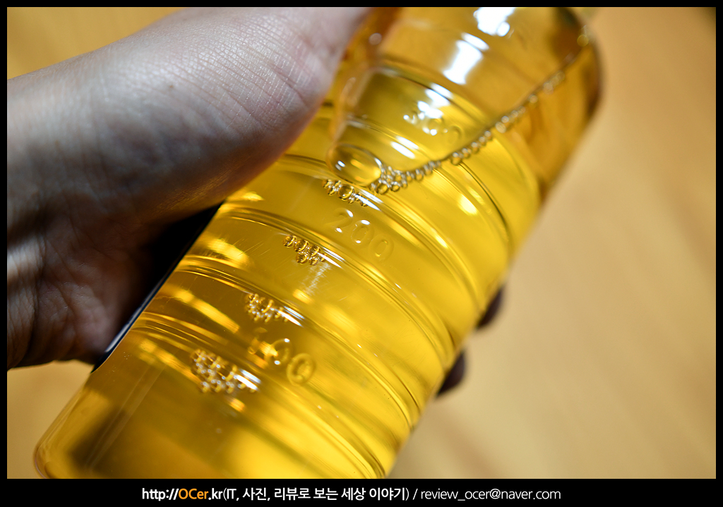 식용유 보다 때깔 고운 것을 확인할 수 있는 투명용기에는 눈금을 표시하고 있어서 경차 등과 같이 오일탱크가 작을 경우 나눠서 넣기에도 편리합니다.