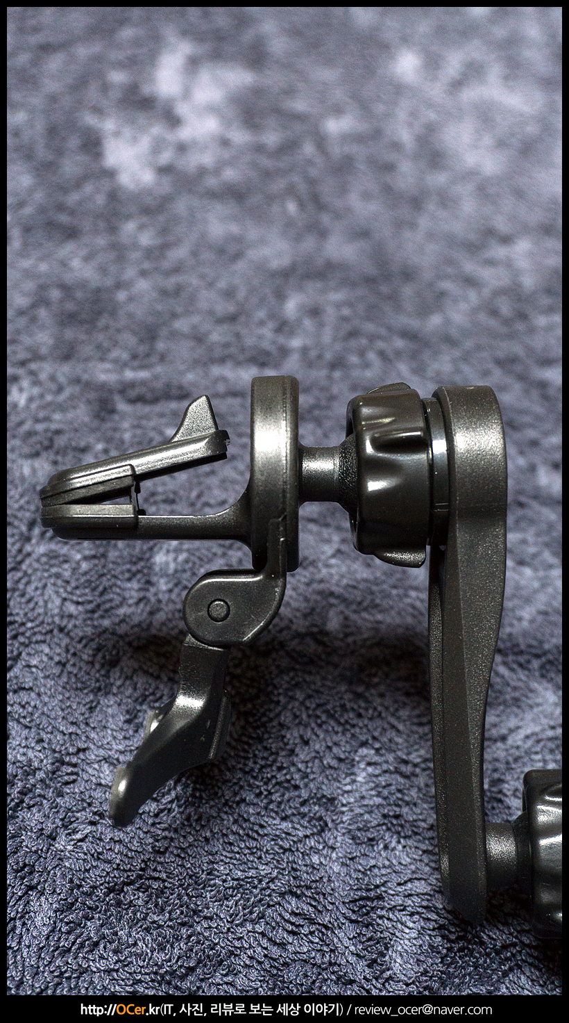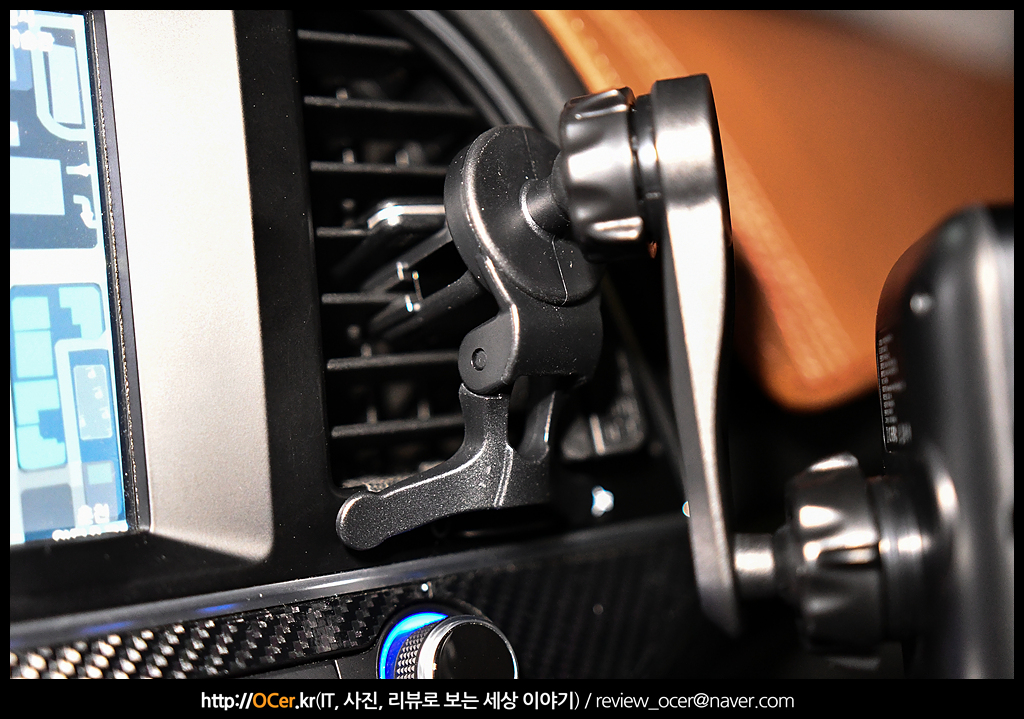 한가지 단점이 있다면, 송풍구 고정용 마운트만 제공된다는 것인데, 다른 브랜드 대비 이 부분은 좀 아쉽습니다. 하지만 송풍구용 마운트 중에서도 고정력이 좋은 편에 속하는 마운트가 제공되는데 위와 같이 송풍구 날개에 한번 고정을 하고,