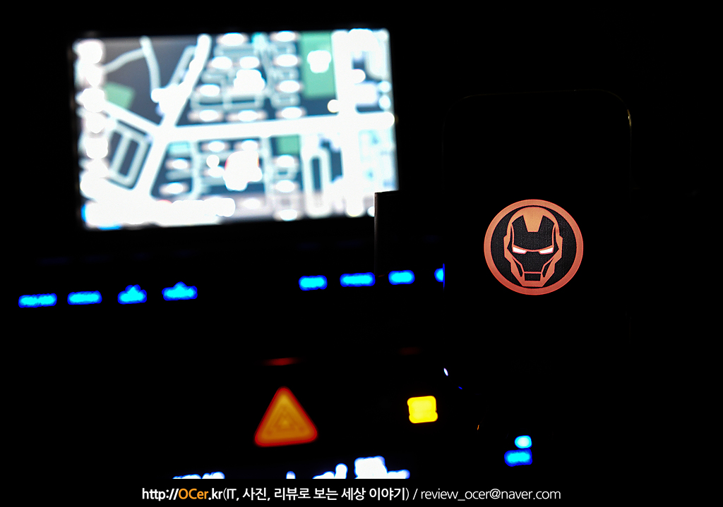 하지만 단점 아닌 단점을 하나 발견할 수 있었는데요. 평상시 사용하지 않을 때는 이렇게 아이언맨 LED 가 들어오지만, 충전을 하려고 스마트폰을 거치하게 되면 이것이 가려진다는 것이죠.