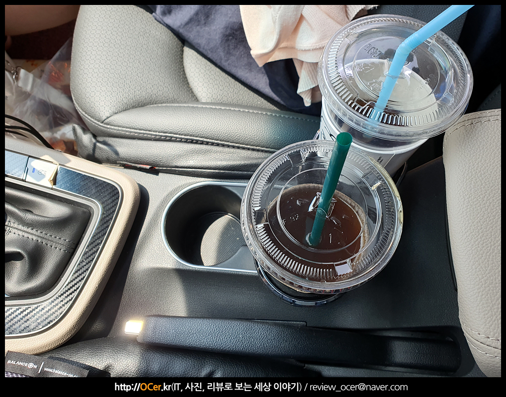 테스트 전 끝으로 알리익스프레스에서 저렴히 구입한(불스원몰에도 있다는 것을 뒤늦게 알아버렸다는 것은 안비밀) 컵홀더도 같이 장착해 봤습니다. 컵홀더가 2개에서 4개로 늘었네요 ㅎㅎ