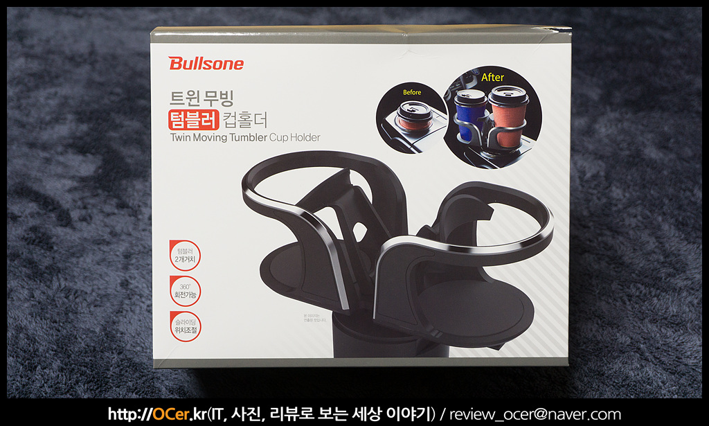 불스원 트윈 무빙 텀블러 컵홀더라는 제품이고요. 제품 페이지에서 살펴보니 기존 제품보다 좀 더 견고해보이고, 잡소리도 신경 쓴 것 같이 보였습니다. 물론 실제로 만져보기 전까지는 말이죠. 불스원 제품들은 제품 자체도 평균 이상 만족할 수 있지만, 제품 페이지에서도 사용해보지 않아도 꽤나 디테일하게 느낄 수 있다는 것이 좋은 것 같습니다.