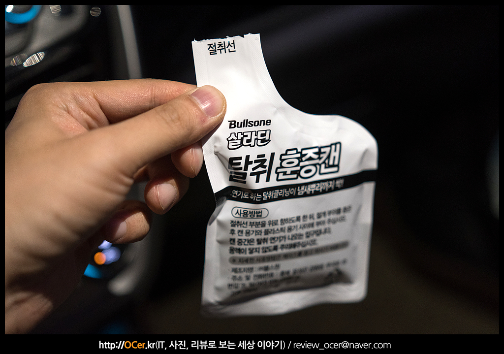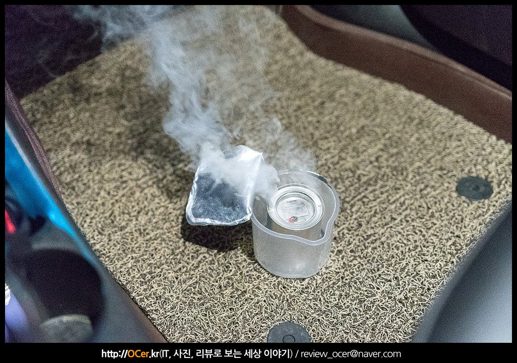 그리고 차량 내부를 살펴보면서 더 이상 연기가 올라오지 않으면 문 전체를 열고 한 5분 정도 환기시켜 줍니다. 저 같은 경우는 지하주차장에서 진행을 하여 5분 정도 송풍을 해주고 나서 차량 윈도우를 아주 조금씩만 내리고 하룻밤을 보냈습니다. 문을 다 열어둔 것보는 환기가 더 빨리 진행되겠죠? 가장 좋은 방법은 송풍이나 에어컨을 튼채 윈도우를 다 내리고 드라이브를 하는 것 입니다. 하지만 야간에 지하주차장에서 진행한 탓에 그러지는 못하였고, 다음날 다시 차량에 탑승해 봅니다.