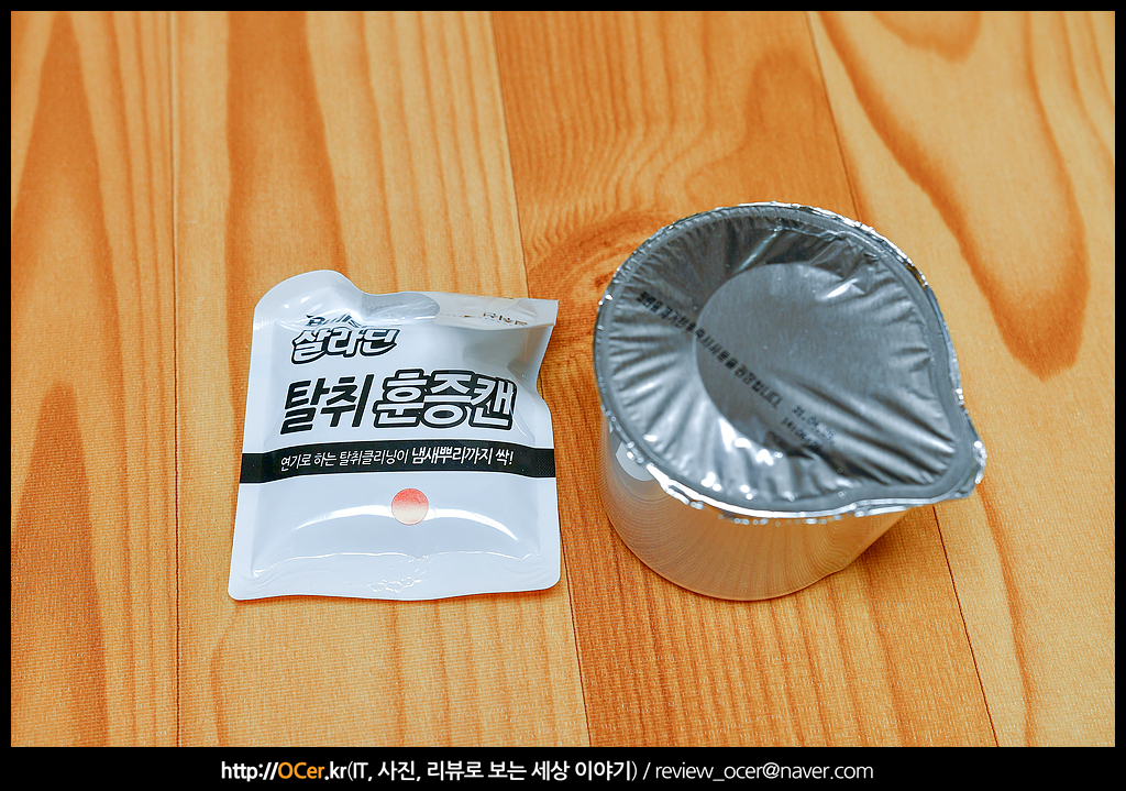 제품 패키징은 일반으로 써봤던 훈증캔과 동일합니다. 물이 들어간 파우치와, 플라스틱 용기 안에 훈증캔이 있습니다.