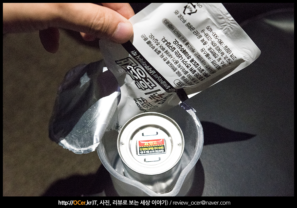 위와 같이 조심스럽게 훈증캔과 플라스틱 용기 사이에 물을 부어줍니다.