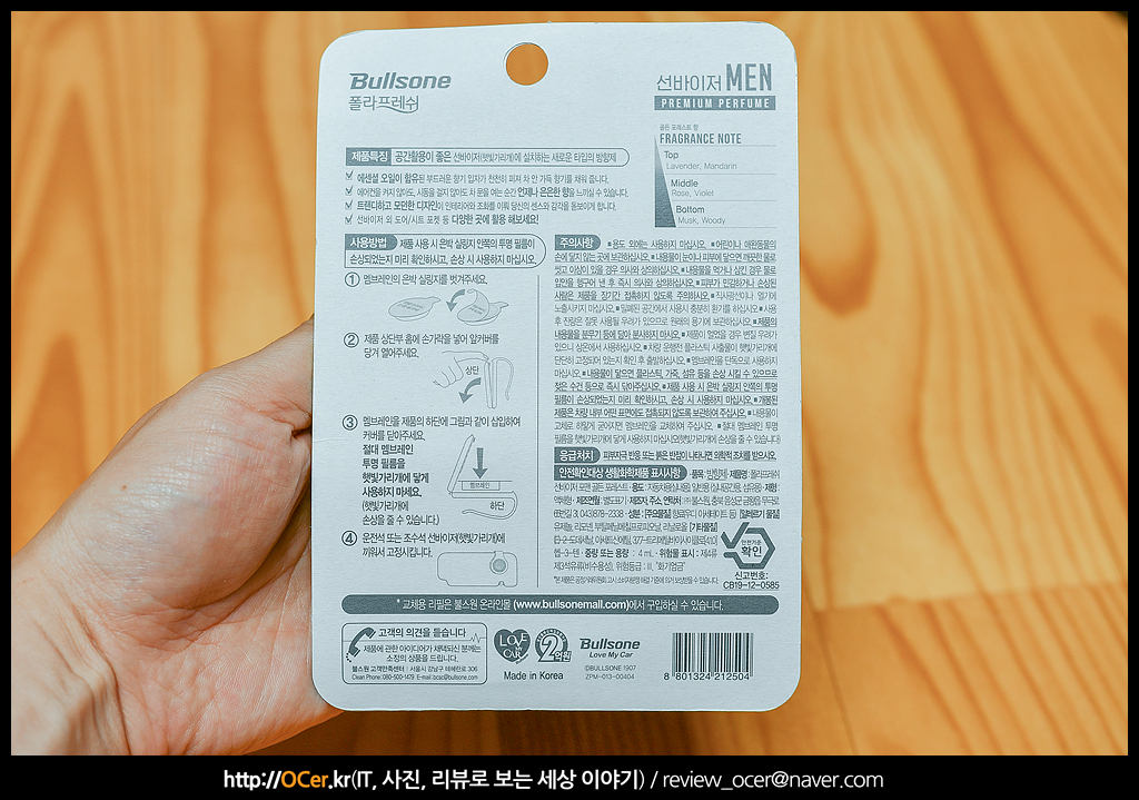 차 안에 향수를 뿌린 듯~ 이라고 하는데 네.. 향수 뿌린 것 같이 좀 독했습니다. 남자 향수? 또는 짙은 남자 스킨 냄새.. 다시 말하면 약간 아재 냄새..? 아빠들이 좋아하실 듯 하여, 아빠가 중후한 신차를 구입하신다면 선물하면 좋을거 같습니다.