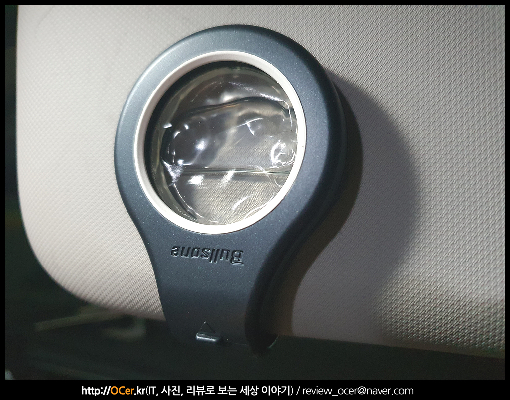 장착도 간단하죠. 썬바이저에 그냥 끼워넣어주면 됩니다. 송풍구에 꽂는 것보다 잡소리 날 염려도 없고, 어쩌면 머리 위에 있어서 코와 가까우니 더 향기를 잘 맡을 수도 있구요.