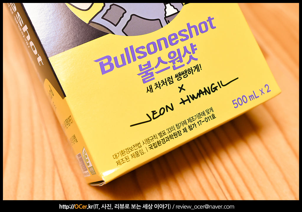 이번에 소개하는 불스원샷 스탠다드는 전황일 에디션으로 1개를 사면 500ml 2개가 들어 있는 구성으로 판매되고 있습니다.