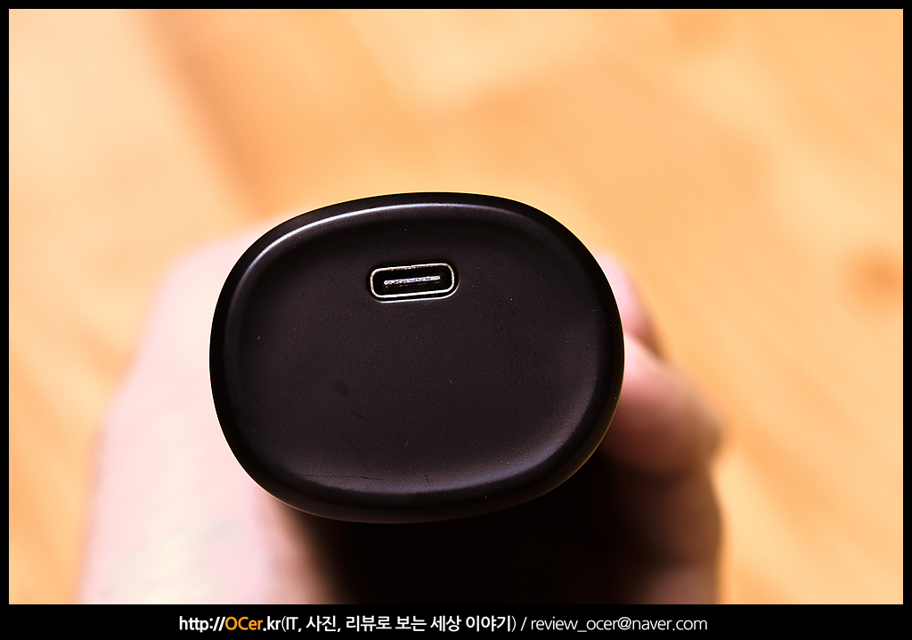 충전 단자는 윗쪽 등 부분에 위치하고 있습니다.