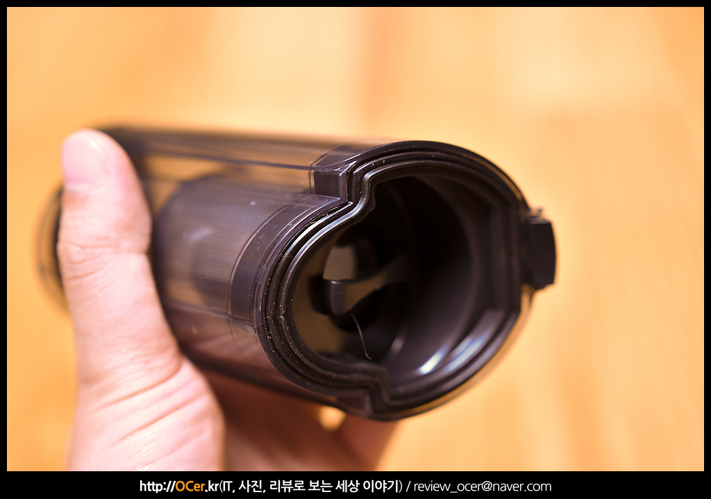 먼지통의 결합되는 부분에는 고무 실링처리 되어 있어서 음료 같은 것을 흡입하였을 때 샐 염려는 없겠네요.