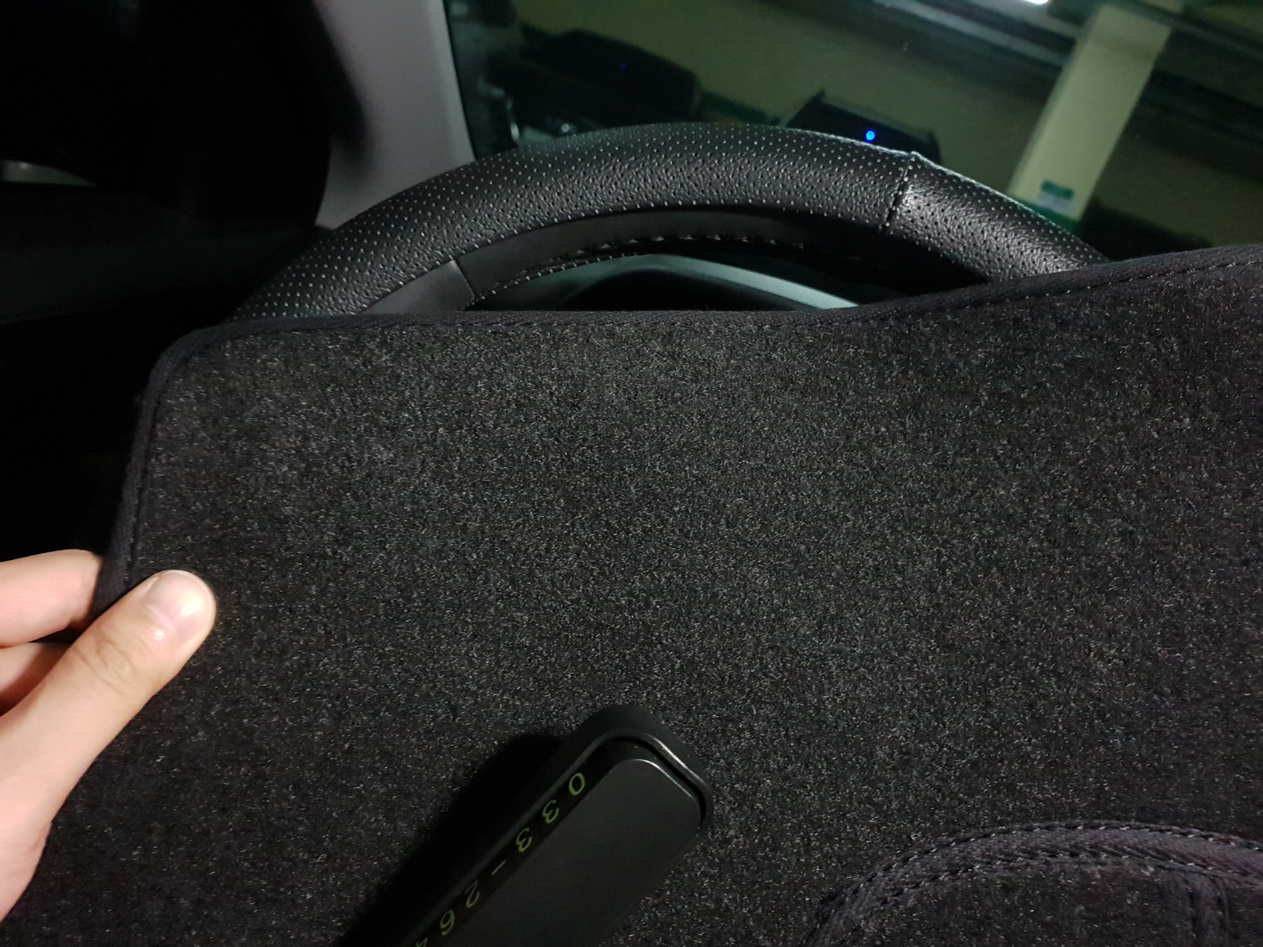 이제 사용한지 한 1주일 되었는데요. 우선 난반사가 가죽 재질의 대시보드커버에 비하여 거의 없어진 것에 만족하고, 운행하다 보면 브레이킹 등으로 인하여 대시보드가 살짝 밀리거나 해서 다시 자리를 잡아주곤 했었는데, 크게 신경 쓰지 않아도 되는 점이 좋았습니다.