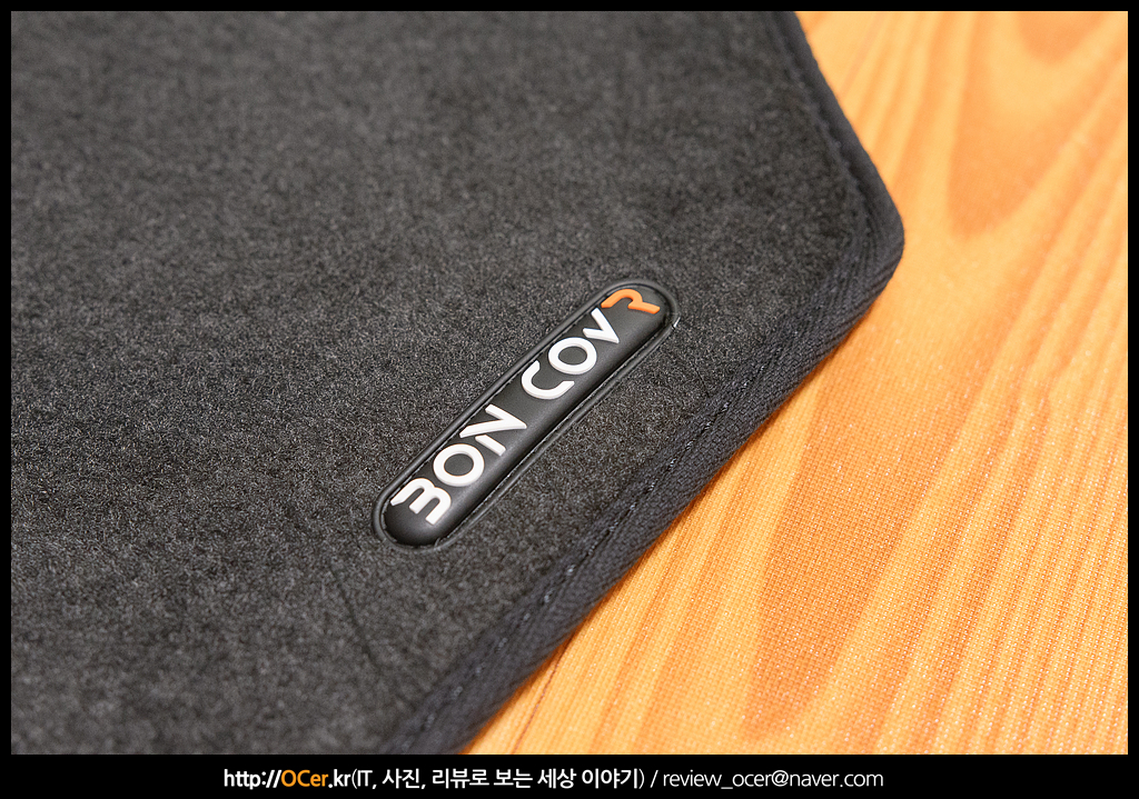 조수석이 덮히는 부분 하단에는 본커버 마크가 박음질되어 있습니다.