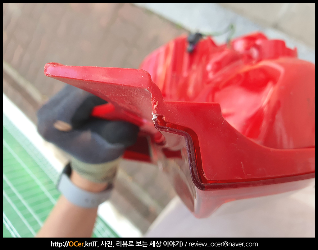 참, 중고 led 테일램프를 받아보고 걱정이 있었는데요. 바로 라이트 밑 부분의 뚫려 있는 듯한 마감 때문이었습니다.