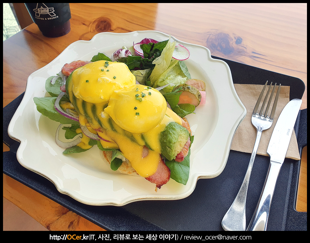그리고 이건 베이컨 에그베네딕트? 라고 하는 처음 듣는 이름의 음식인데.. 개인적으로 반숙 좋아하는 저로써는 아주 좋았습니다. 여자친구가 취항저격했네요. 베이컨이라는데 어느 후기에서는 햄 같다고 하는데 저는.. 맛나게 잘먹었구요. 야채가 정말 싱싱해서 좋습니다. 여자친구가 가끔 아보카도 들어간걸 찾는데 저기 오이처럼 썰어져 있네요.