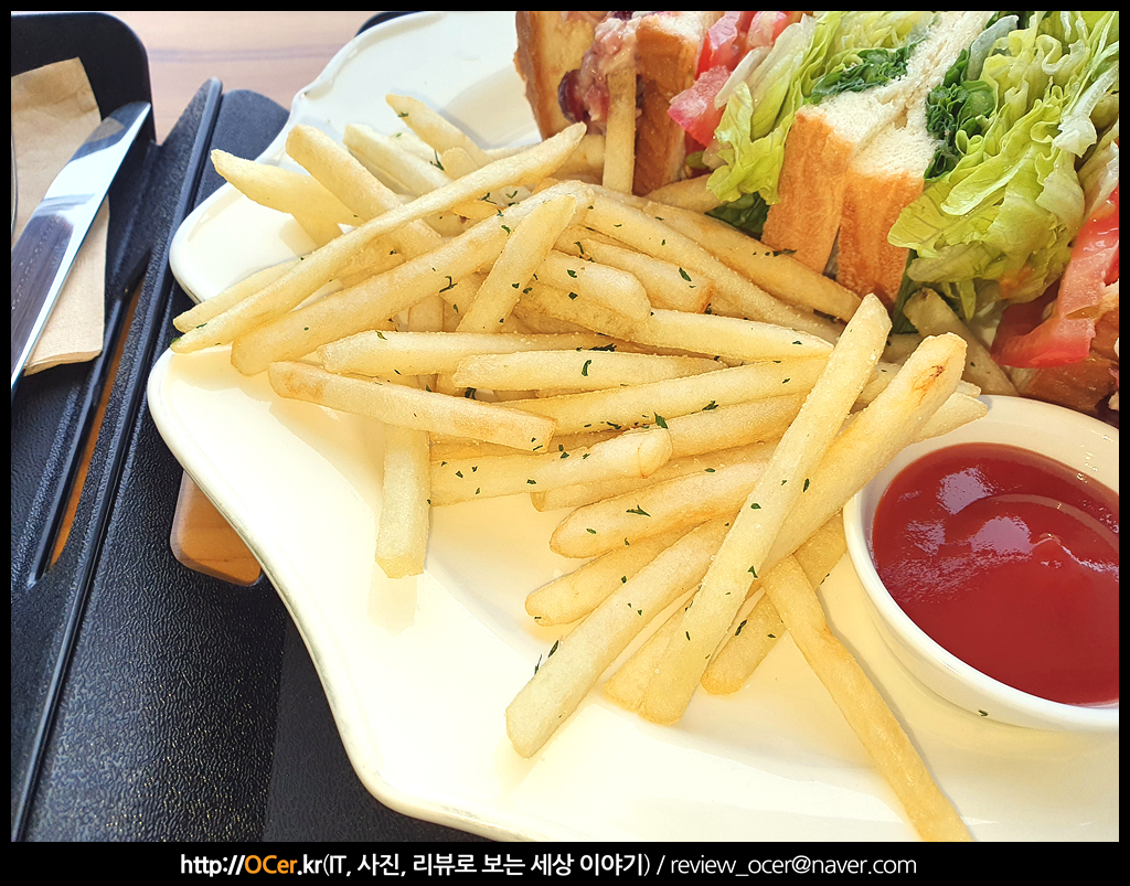 보통 감자튀김은 좀 딱딱해서 먹다 보면 입천장이 까지거나 그럴 때도 있었는데요. 얘는 말랑말랑하지만 적당히 익힌 것이 좋았네요.