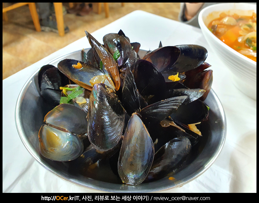 우선 가면 홍합을 다 건져내야 합니다.. 익어서 다 빠질 줄 아시는 분이 계실텐데 여기는 싱싱해서 그런가, 다 붙어 있어서 일일이 분리(?) 해야 합니다.