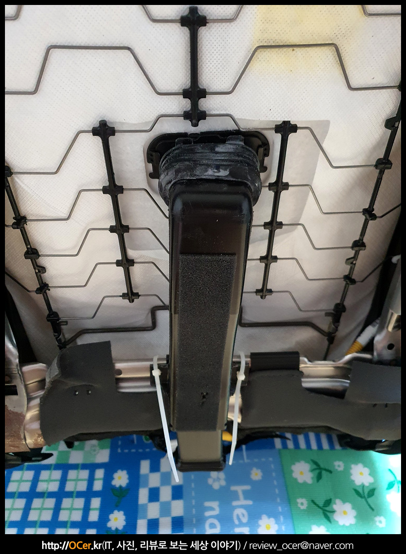 한가지 아쉬웠던 점은 통풍시트 diy 에 필요한 필수 부품들은 제공이 되었는 반면, 고정 볼트는 없어서 위와 같이 케이블 타이로 고정해야 했습니다.