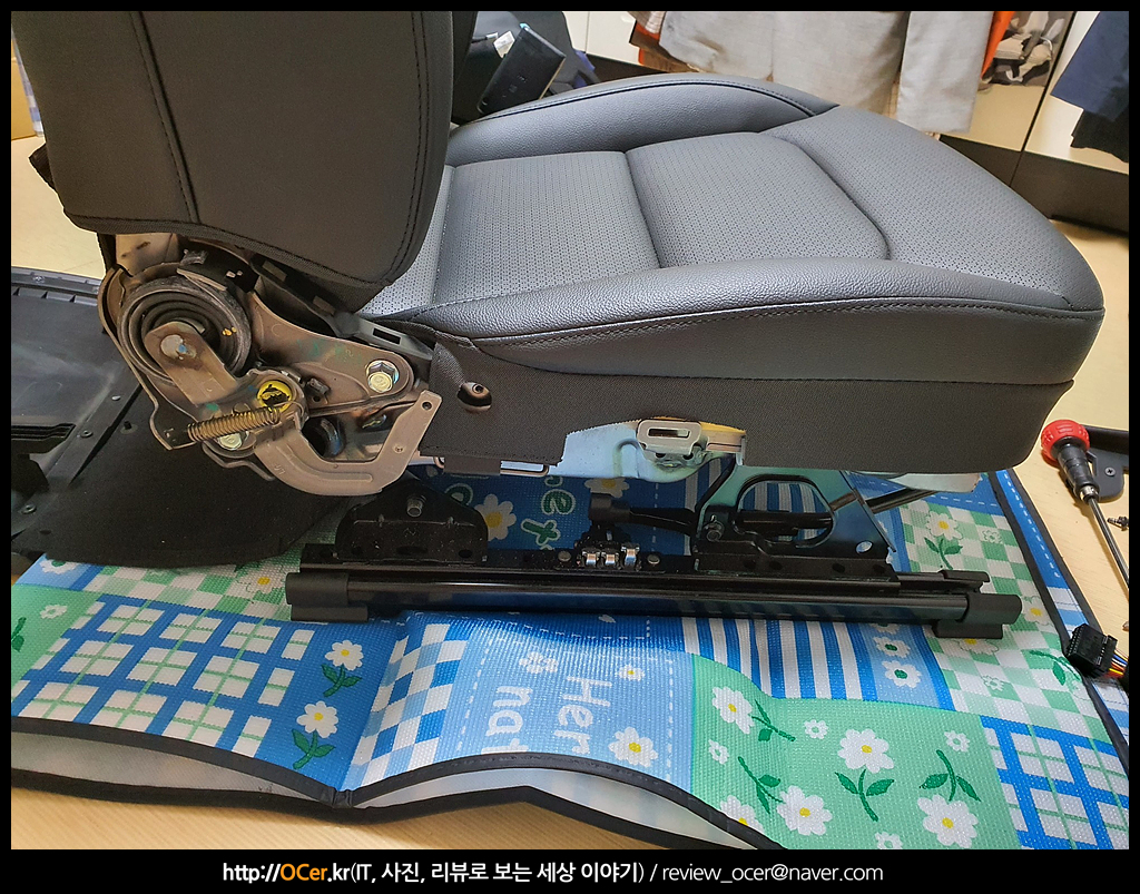 안녕하세요. OCer 입니다. 지난번 글에서는 아반떼AD 순정 자동차 통풍시트 DIY #1 구성품 확인 포스팅을 전해드렸는데요. 이번 글에서는 구성품을 확인하고 탈거해서 힘들게 집까지 들고 온 시트를 분해하고, 시트에 해줘야 할 작업들을 해보겠습니다. 우선 제가 들고 온 시트는 조수석 시트 입니다. 지난번 글에서도 설명하였듯 조수석 시트에 통풍시트 메인 배선이 들어가야 하기 때문에 조수석 부터 작업하려고 조수석을 들고 왔습니다.