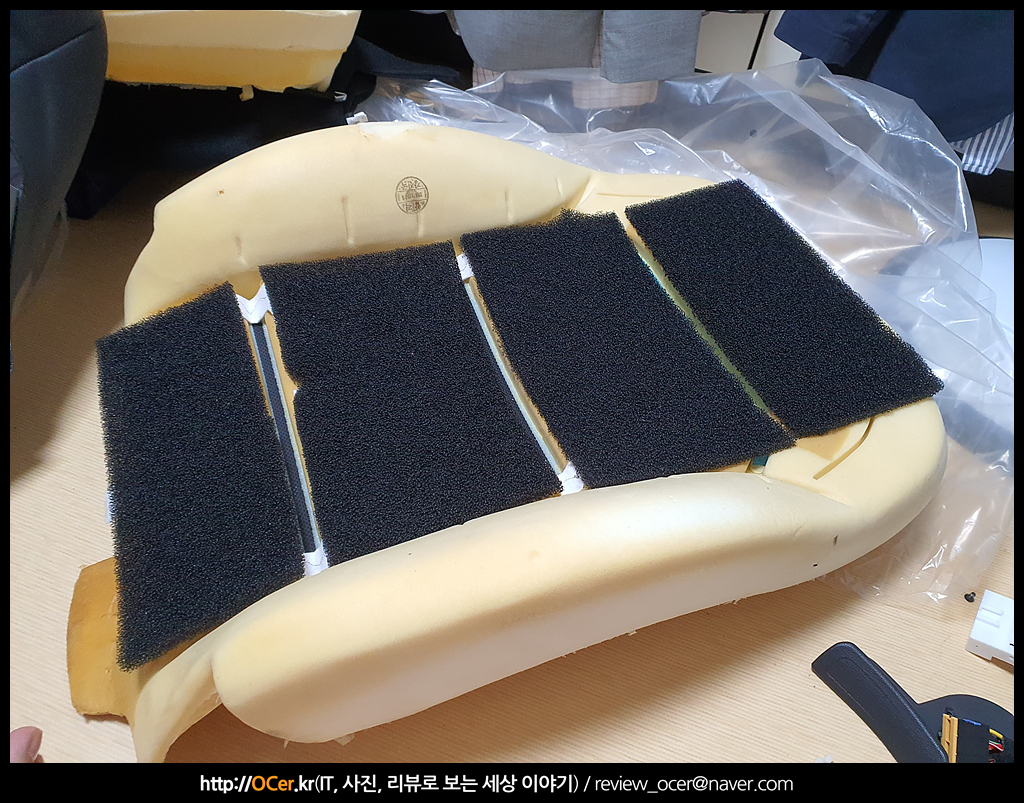안녕하세요. OCer 입니다. 지난 글 까지는 아반떼AD 순정 자동차 통풍시트 작업을 위해 조수석 시트 작업을 하였습니다. 시트 프레임에서 쿠션과 가죽을 벗기고 통풍시트용 쿠션으로 교체하고 시