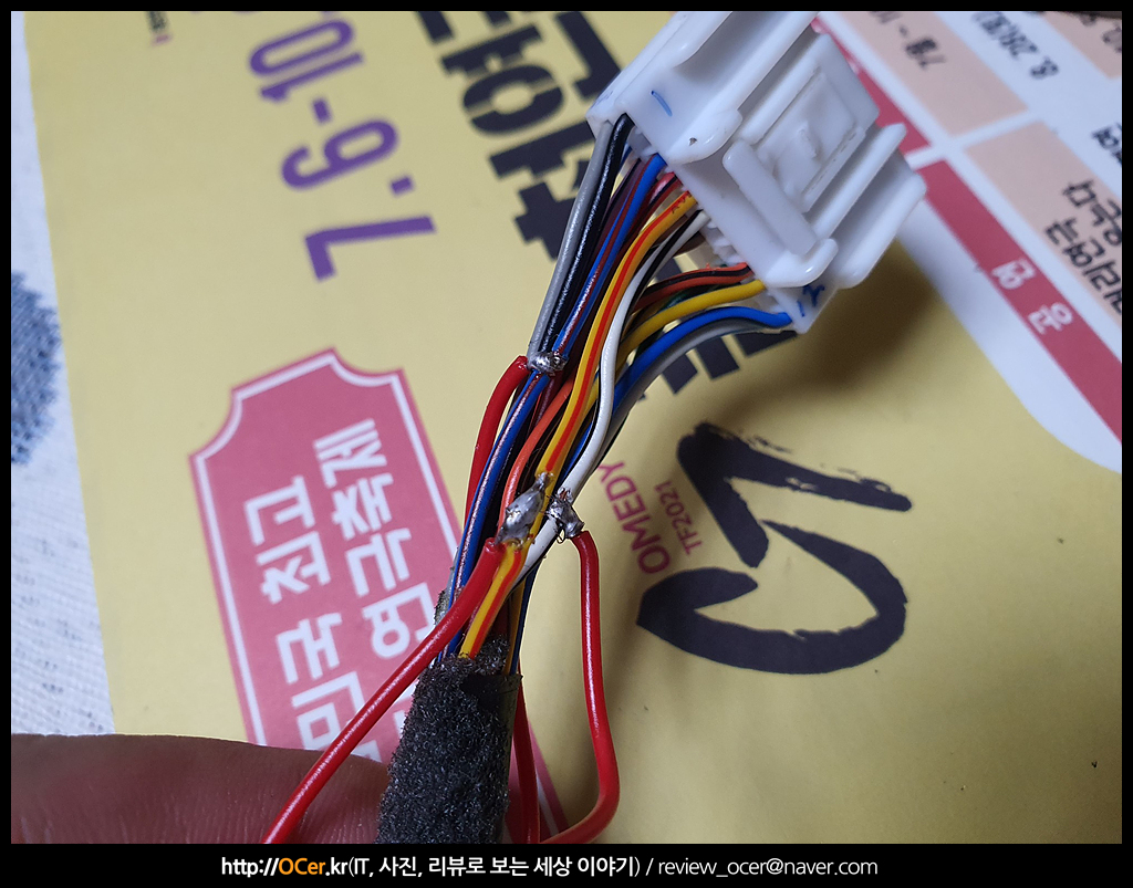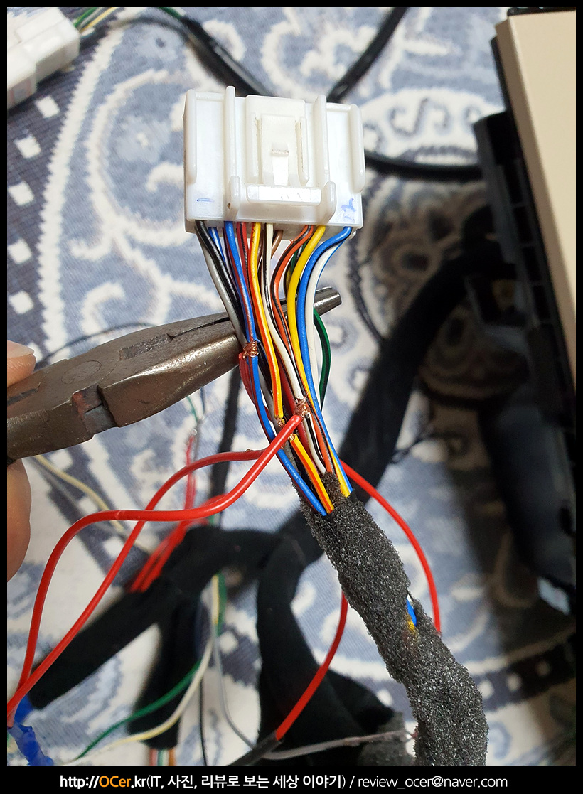 이 작업을 할 때는 가스 인두기나 무선 인두기가 있으면 차에서 해도 되지만.. 자세가 불편하니까 아예 콘솔 패널을 가지고 와서 하는 것이 편합니다. 납땜을 하면서, 다 하고 나서 배선 색상과, 핀을 몇번씩 확인을 해주었구요.