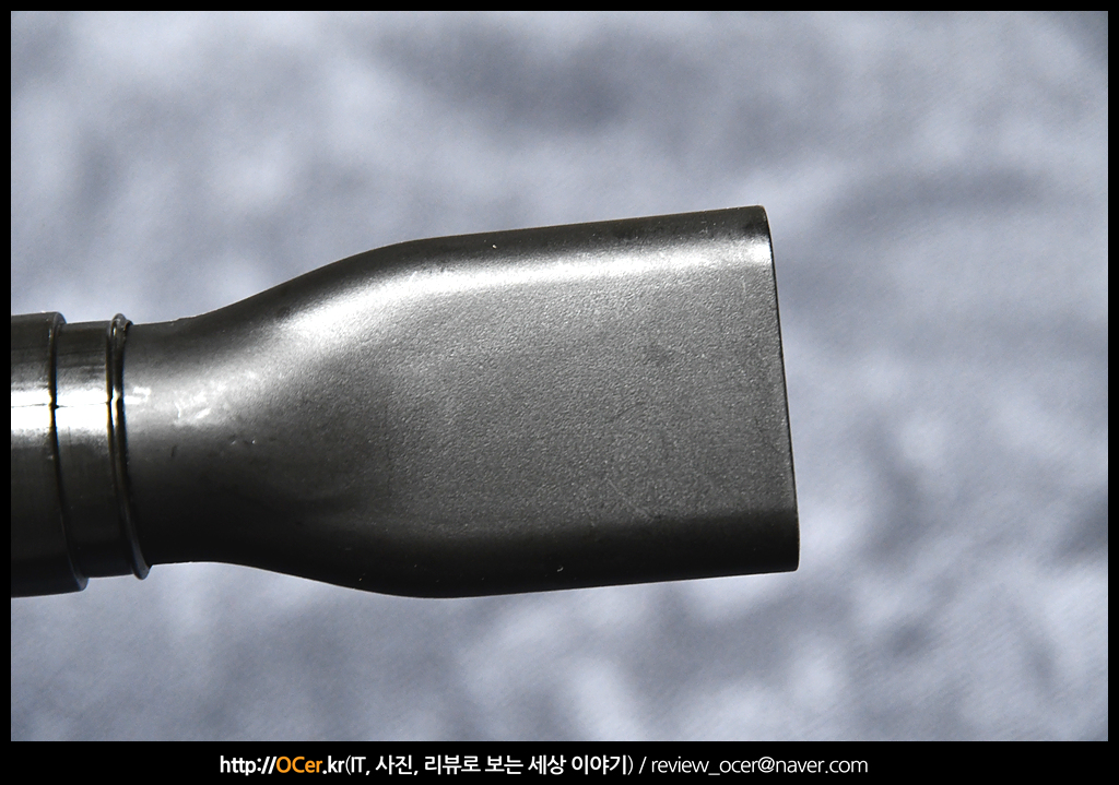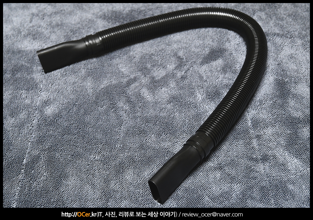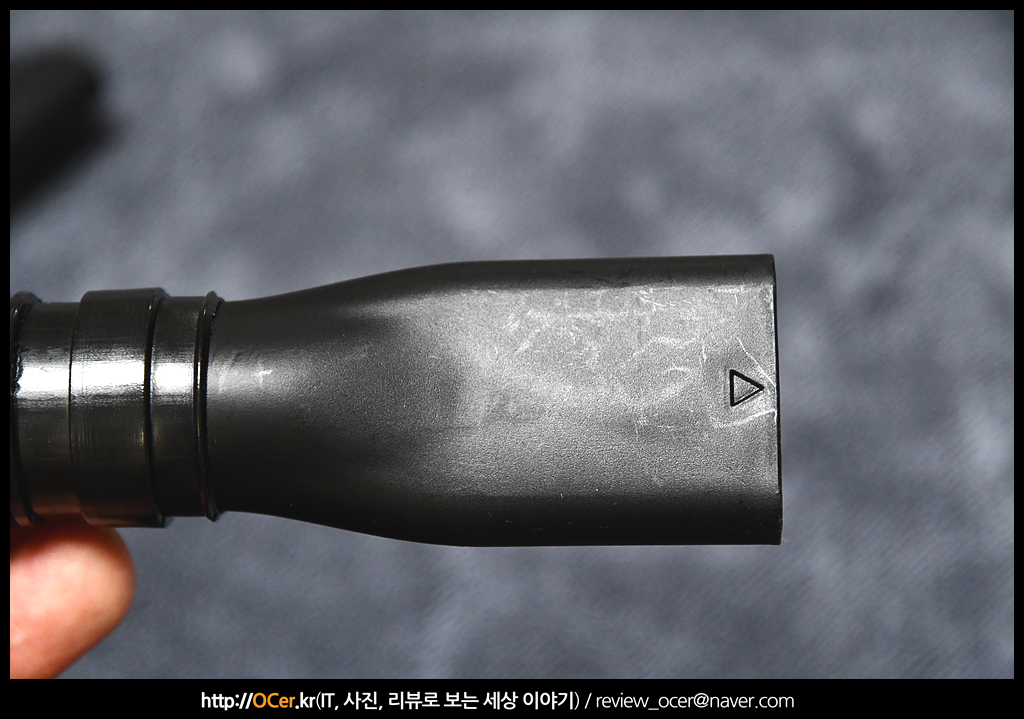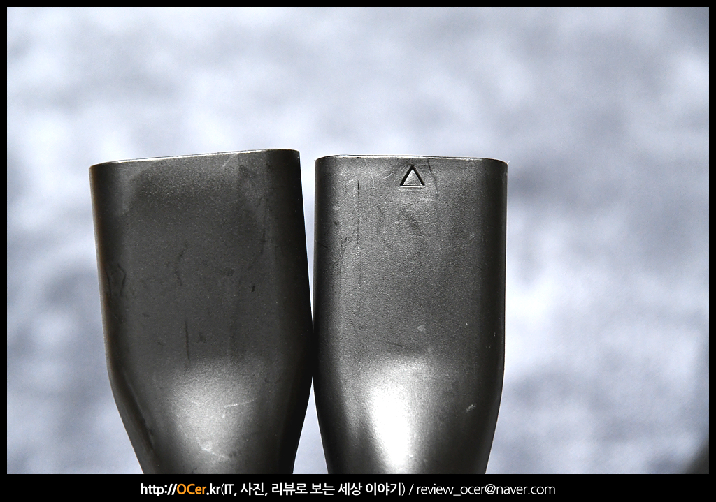 그리고 연장 호스도 장착해봤는데요. 장착하기 전에 간략히 앞뒤 끼워지는 부분 사이즈를 확인해보니 확실히 아주 살짝 차이는 있었습니다. 아까 설명 드린대로 화살표 방향이 있는 것을 본체에 삽입해 주세요.