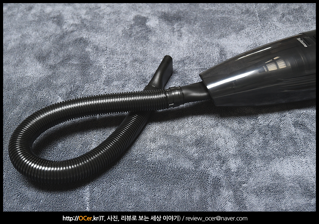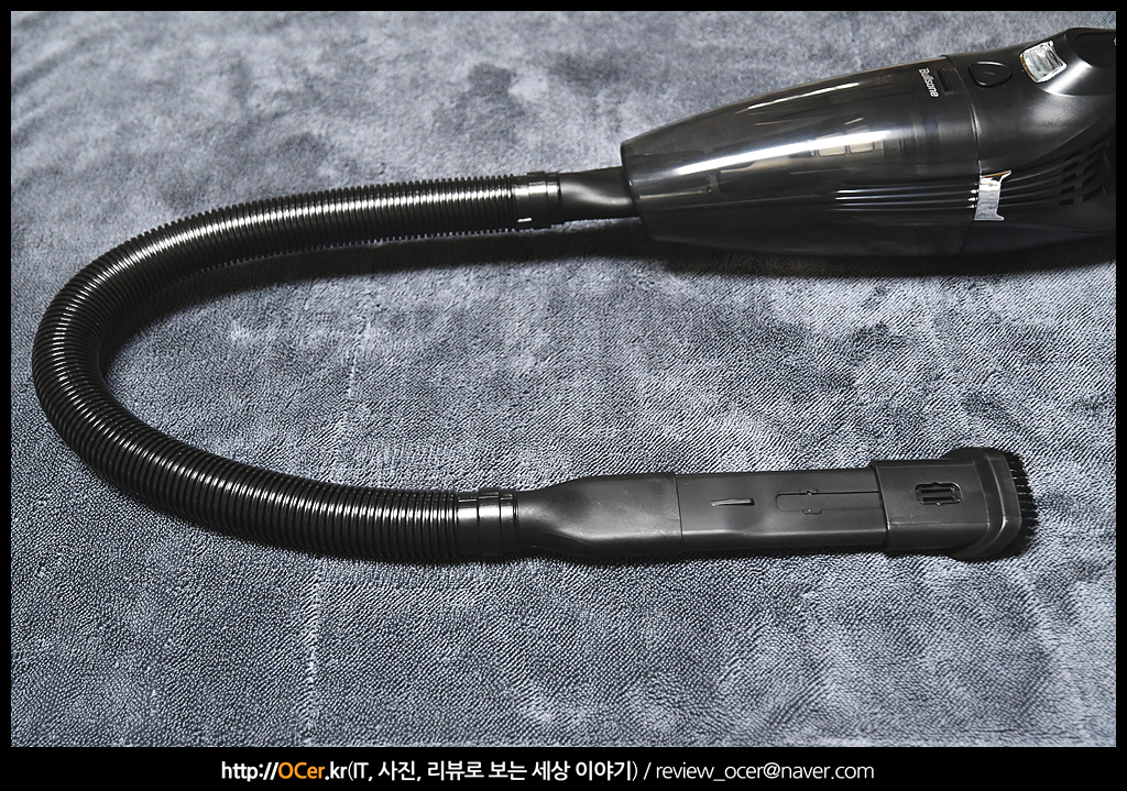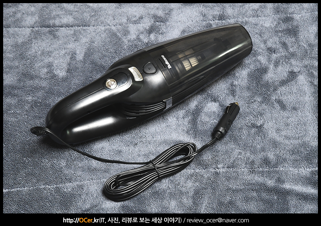 디자인은 얼마 전 살펴 봤던 불스원 파워 슬림 무선 청소기보다는 이쁘다고는 할 수 없지만 가장 무난한 자동차 청소기 디자인이 아닐까 싶습니다. 유선이다 보니 시거잭 전원 케이블이 달려 있구요.
