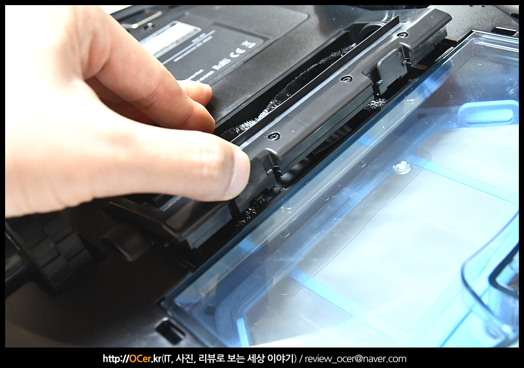 물통 겸용에도 먼지 흡입구로 보이는 구멍이 좀 더 크게 되어 있습니다.