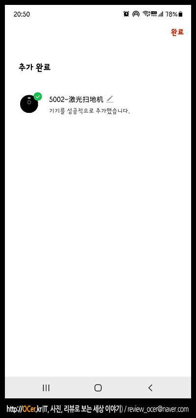 이 과정에서 한 30분 정도 헤매다 결국 연결을 하고 추가 완료된 로봇청소기를 볼 수 있습니다. (실제 모델명하고는 다르게 나옵니다.)