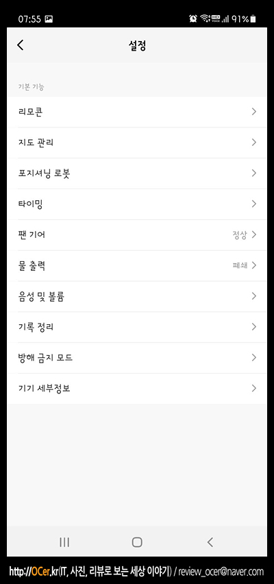 설정에 들어가면 여러가지 기능이 있고, 에코백스 디봇 오즈모 950 로봇청소기와 비슷한 기능들을 제공합니다.