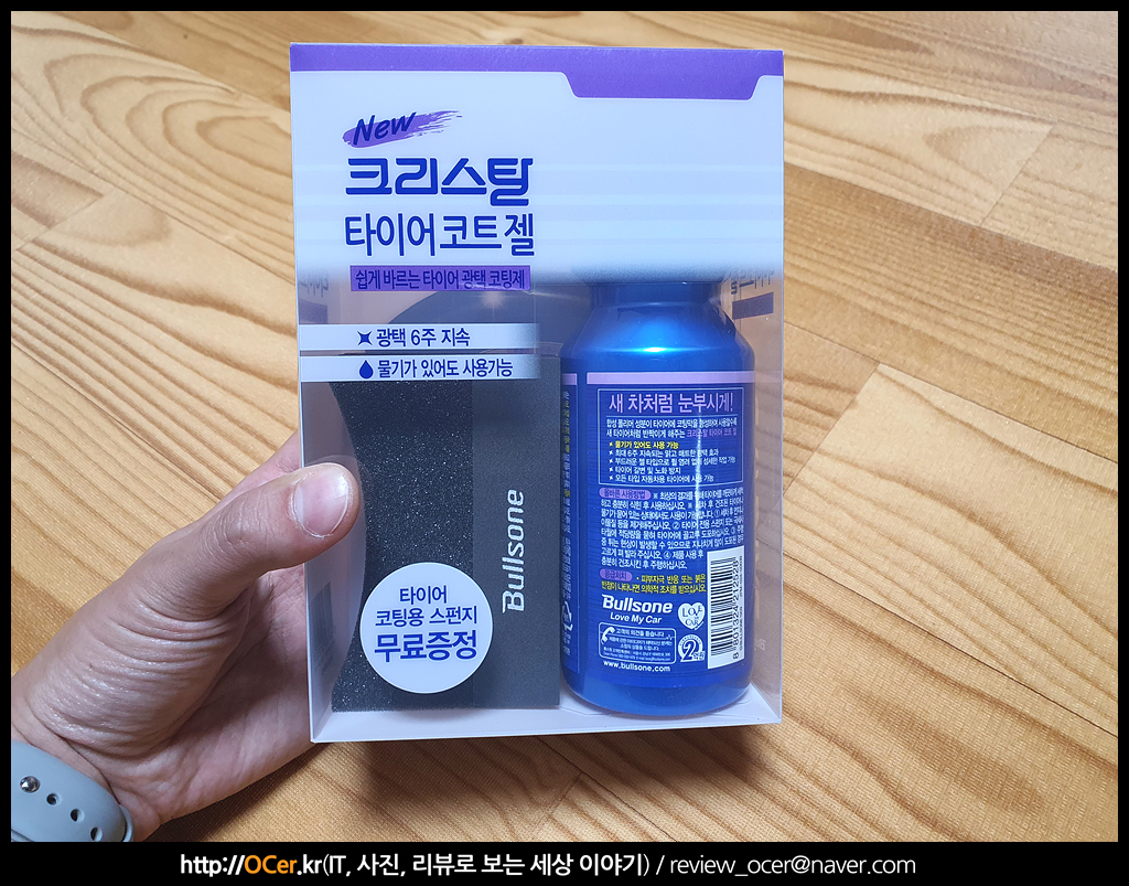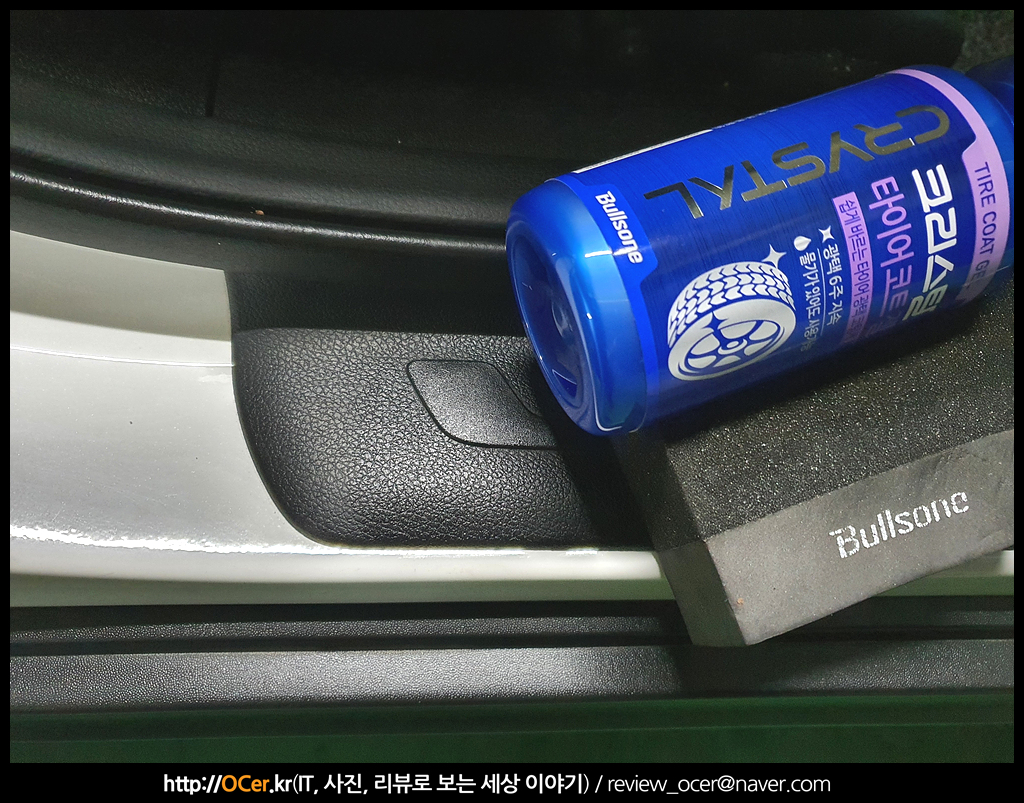 이 불스원 크리스탈 타이어코트젤에는 여러가지 특징이 있지만, 우선 사용해보지 않고 눈으로 확인 가능한 것이, 코팅에 필요한 어플리케이터(타이어 스펀지) 가 기본 제공된다는 것 입니다. 저야 디테일링 세차 취미를 오래 갖고 있다 보니 몇개씩 사두었었는데, 위와 같이 불스원이 새겨진 타이어 어플리케이터는 꽤 고급지고 불스원이라는 이름만으로도 이 어플리케이터 내구성이 올라가는 것 같습니다.