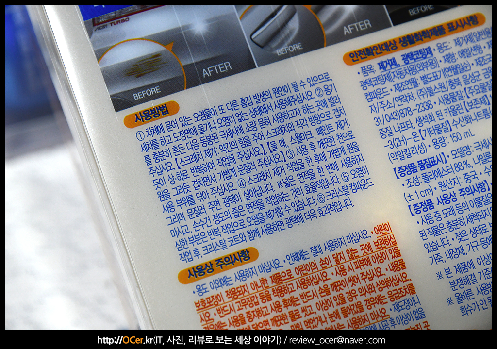 사용방법은 일반적인 세차를 하고 나서 사용하라고 권장하고 있습니다.