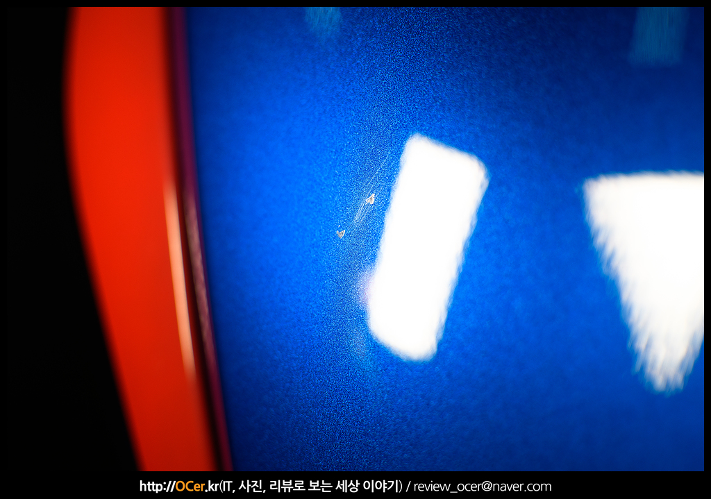 확대해서 보면 대각선 방향으로 스크레치가 발생된 것을 볼 수 있는데요.