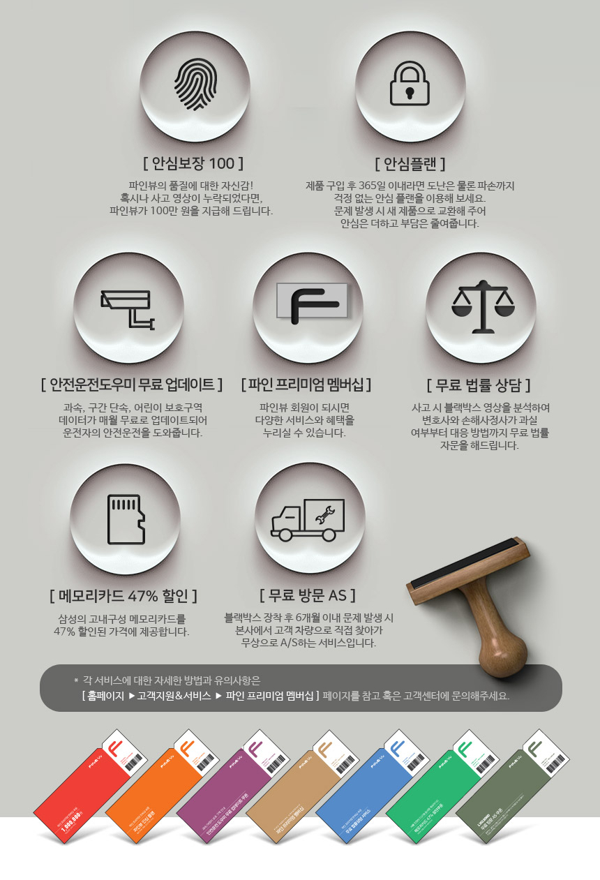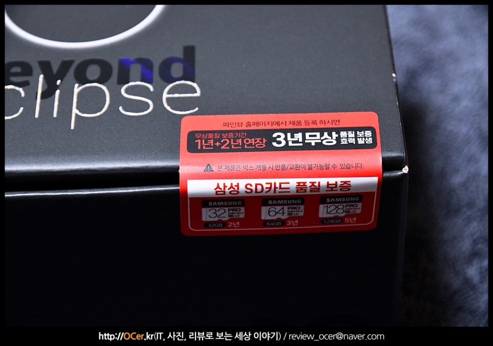 국내 대부분의 블랙박스 제조사들은 삼성 마이크로SD 메모리카드를 번들로 주고 있습니다. 품질 보증도 확실하고 무엇보다 블랙박스 제품들과 호환성이 좋은데요. 그 중에서도 파인뷰 블랙박스 제품들에는 삼성 마이크로SD PRO 모델이 제공됩니다. 게다가 제품등록을 하면 1년+2년 연장이 되어 최대 3년 무상 보증을 받을 수 있다고 하니 꼭 하는 것이 좋겠습니다.