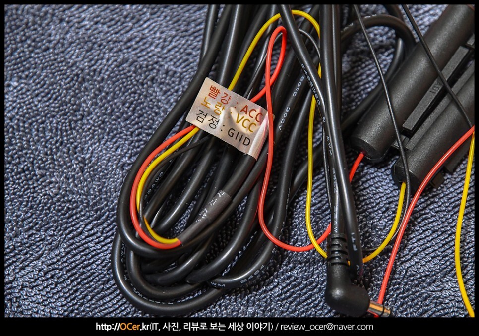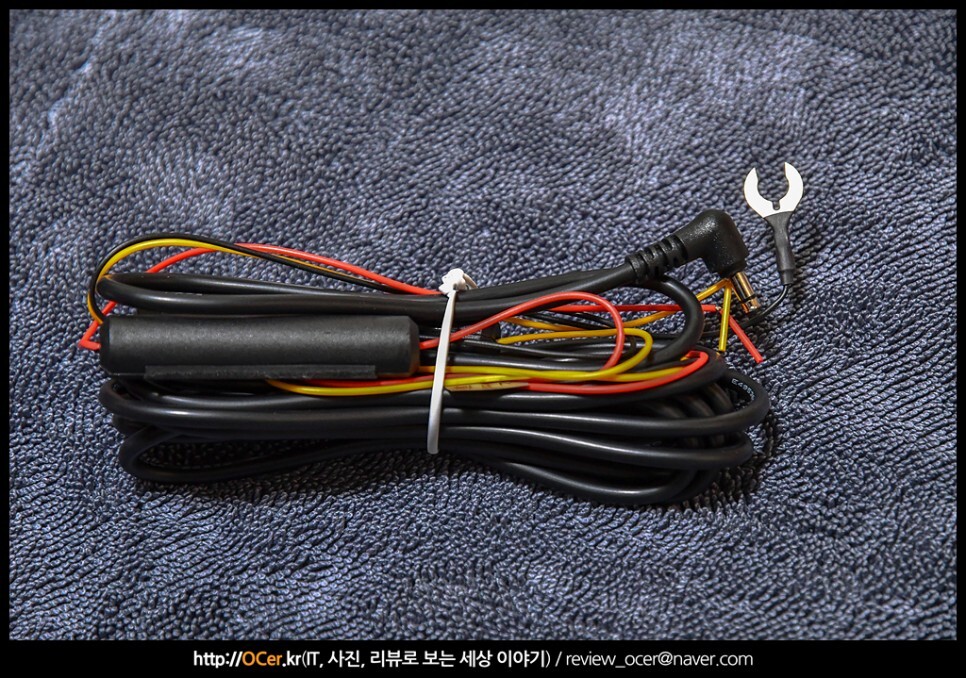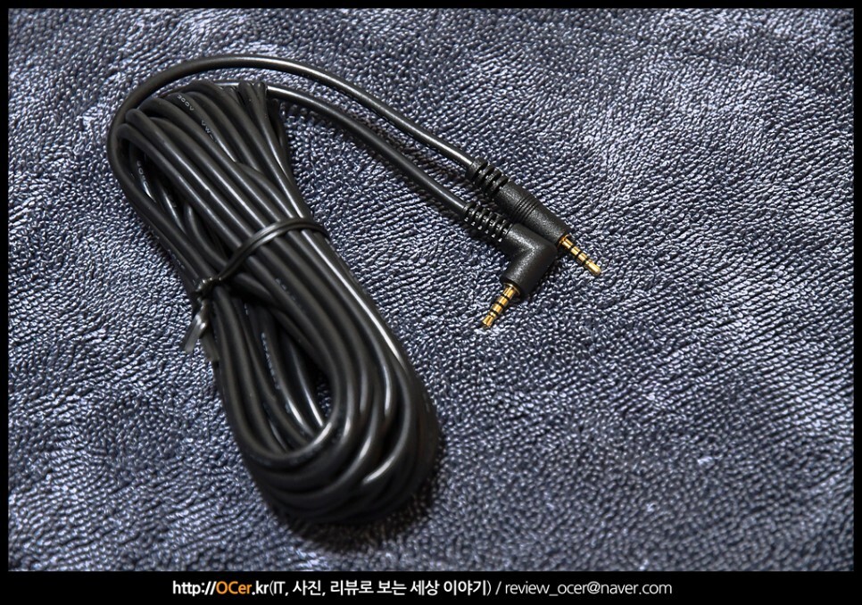 후방 카메라 케이블 입니다. ㄱ자 커넥터 부분이 블랙박스 본체에, 그리고 ㅡ자 커넥터를 후방 카메라에 연결해야 합니다. 추후 이것에 대한 에피소드를 장착기에서 전해드리겠습니다.