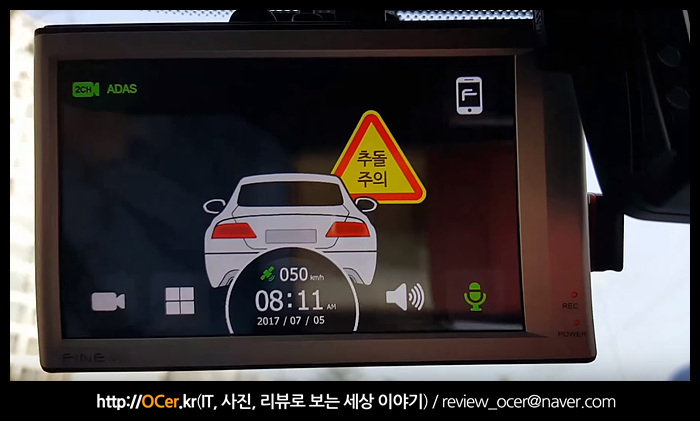 여기에 하나 빠진 것이 있죠? FCWS(전방추돌경보) 인데요. 제가 작년 여름에 교통사고를 크게 당해서인지.. 이전보다 더 안전운전을 하다 보니, 영상에 담을 수가 없었습니다. 그래서 예전 파인뷰 X1000 리뷰 때 사용했던 이미지로 설명을 드립니다.