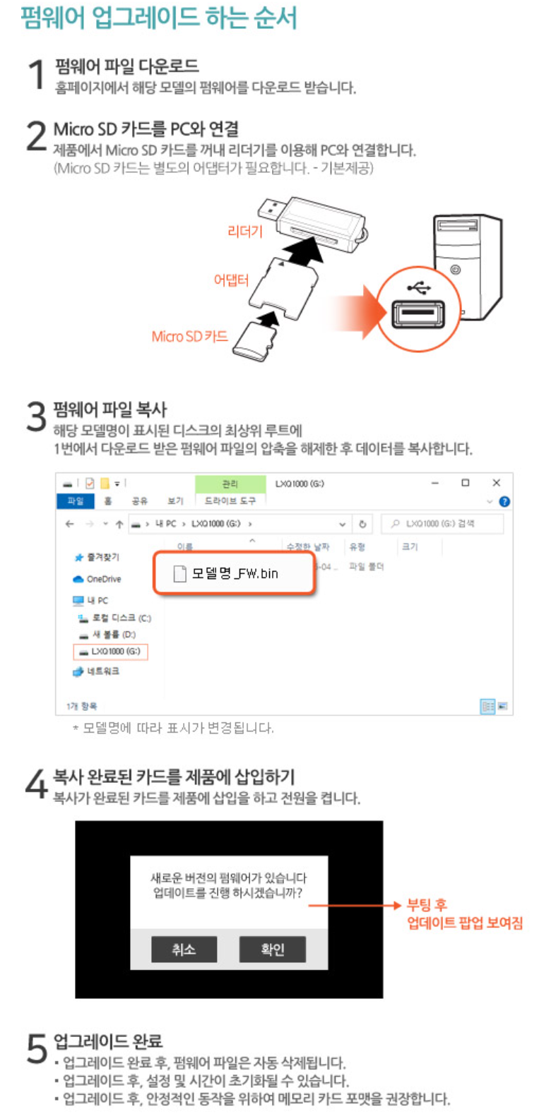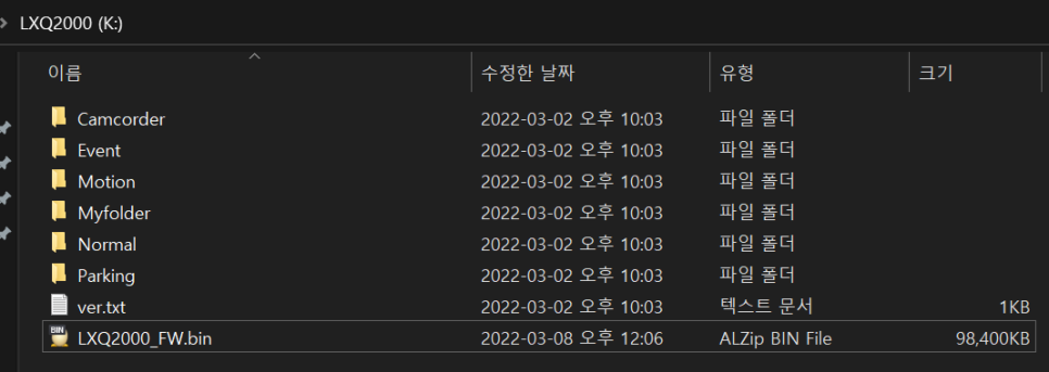 사용하던 128GB 마이크로SD 메모리카드에 LXQ2000_FW.bin 파일이 저장된 것을 확인하고 차량으로 갑니다.