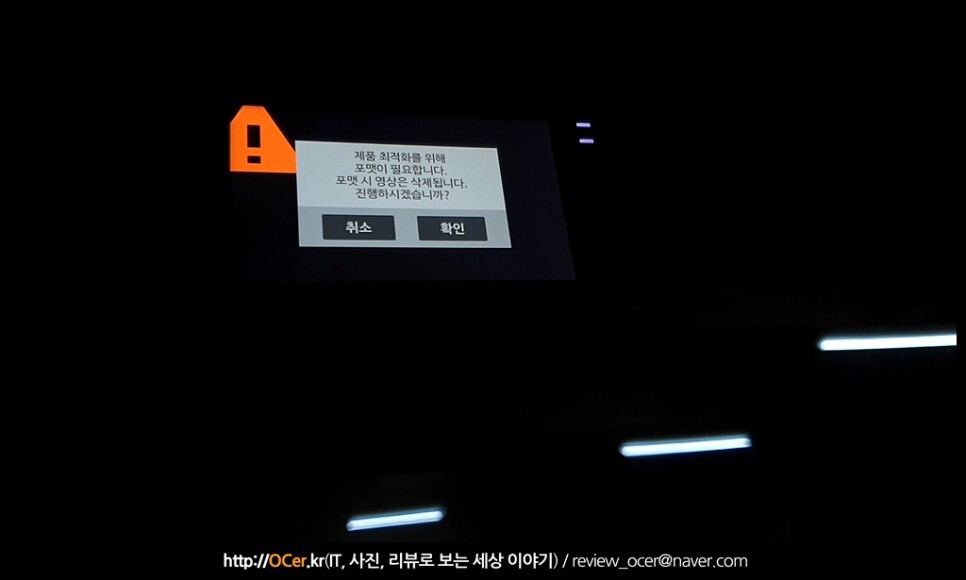 그리고 펌웨어 업데이트가 완료되면 자동으로 메모리 포맷이 진행됩니다. 무조건 진행되어야 하는 과정인지라, 미리 영상 파일은 백업하고 진행하시는 것이 좋습니다. 또는 다른 메모리 카드에 넣어서 업데이트를 진행해도 됩니다. 단, 파인뷰 블랙박스에서 한번은 포맷을 했던 것이어야 인식됩니다.