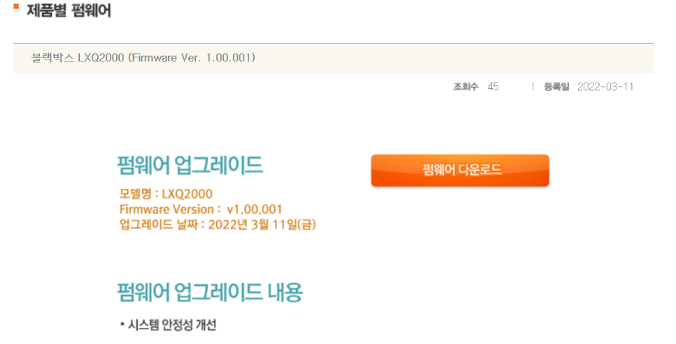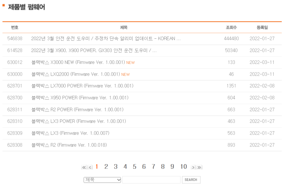 그런 후 제품별 펌웨어 게시판에 들어가서 사용하고 있는 모델을 찾아 다운로드 받으면 됩니다. 저는 가장 최근에 올라온 파인뷰 LXQ2000 를 선택하였습니다.