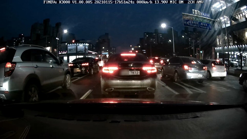야간 신호 대기 중 모습 입니다.