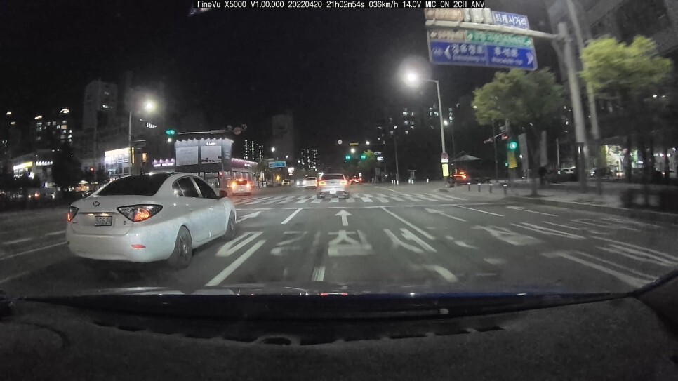 이번에도 어두운 교차로 신호 대기 중인데, 바로 앞 K3 는 물론 두 블랙박스 모두 3차선의 아반떼 스포츠 차량 번호판 식별도 가능하였습니다.