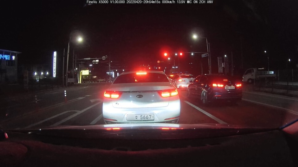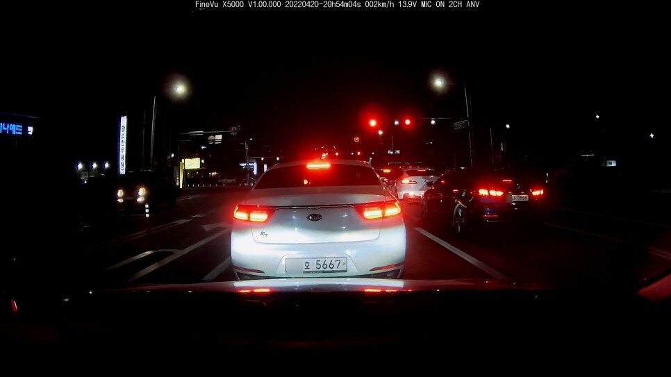우선 정지상태(신호대기 중) 의 야간 번호판 식별 능력 입니다.