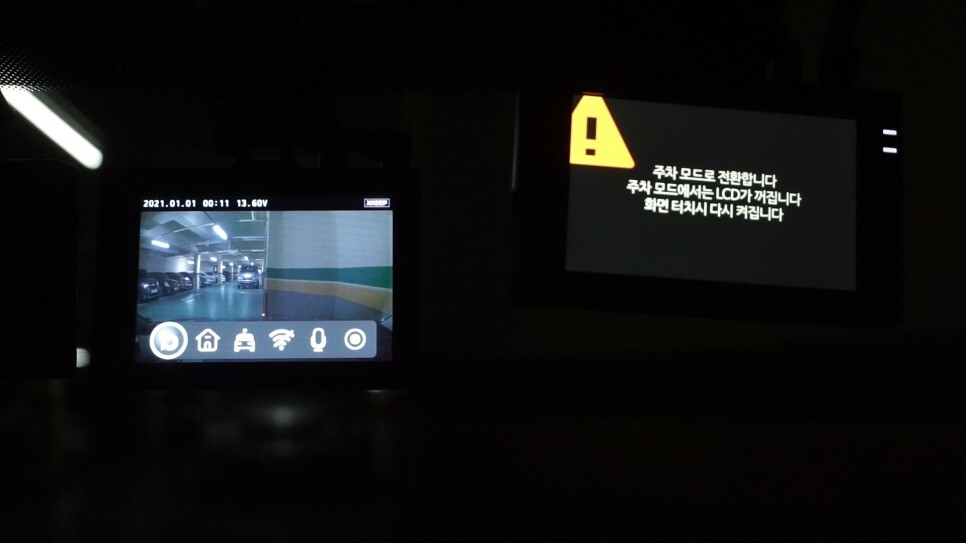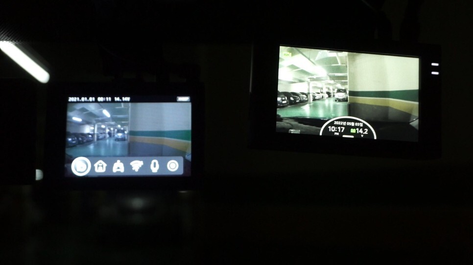 이번에는 시동을 끄고 주차모드 진입 속도를 비교해 봤는데, 이번에도 파인뷰 X5000 가 좀 더 빠릅니다.